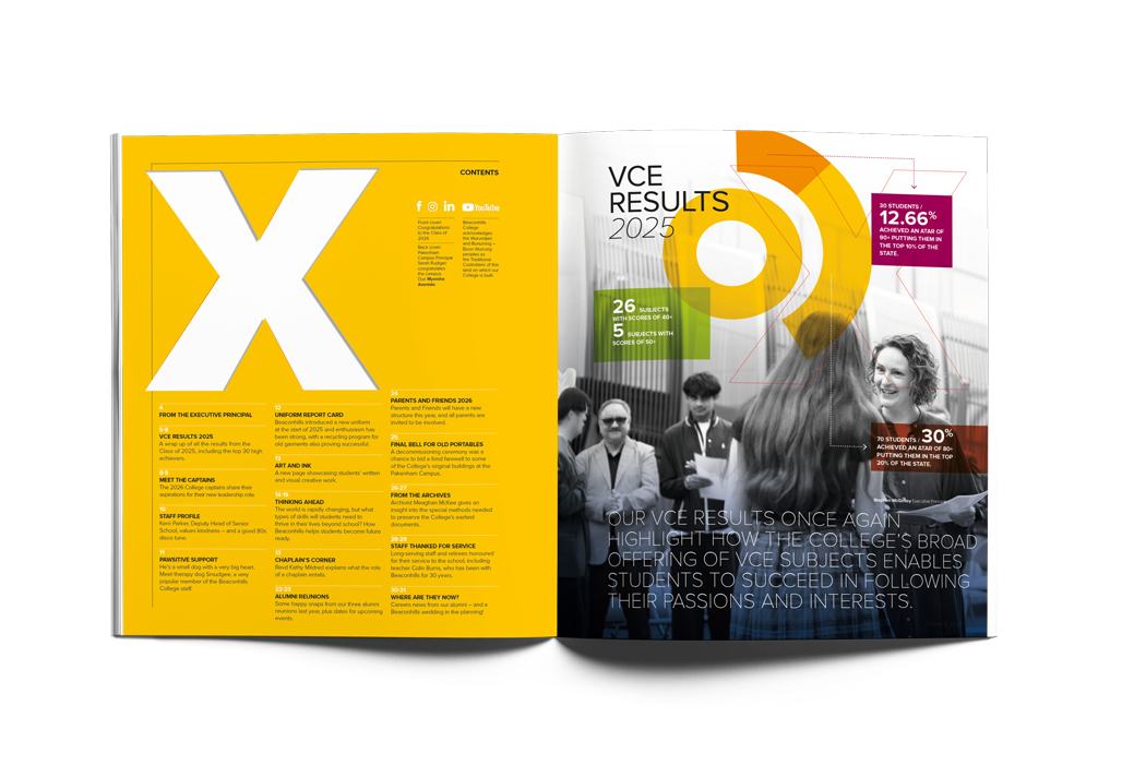 As the creative for many years behind Lux Luceat, we pour heart, precision and passion into every page. Twice a year, we craft a sophisticated, high-end publication that feels luxurious yet warmly connected to Beaconhills. Clean typography, elegant layouts, and thoughtfully curated imagery let student creativity, alumni journeys, and community stories truly shine. For the reader and school community it oozes timeless elegance.