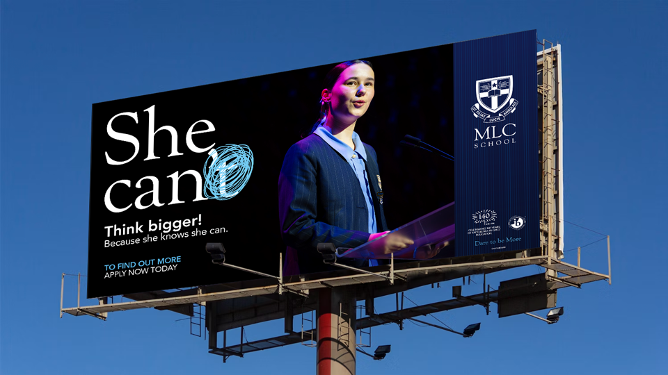 The idea at its core is based on the notion that girls can do anything and can be anything, and are empowered at MLC School to confidently believe and strive for this. They are actively encouraged to be ambitions, 'because she knows she can.' This is the ‘why’ MLC School came into existence. MLC School need to champion and own it more overtly and somewhat brazenly outside in the marketplace to reflect what is already happening internally.